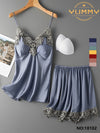 Black Rayon Silk Embroidered Padded Cami Set – Elegant Nightwear 18102