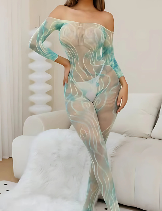 Off-Shoulder Teal Abstract Full Body Stocking – HY-68092