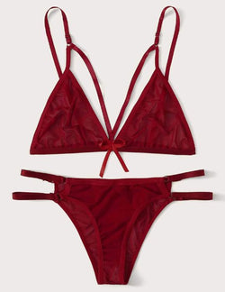 Maroon Stuff Net Bra & Thong Set – Women’s Lingerie